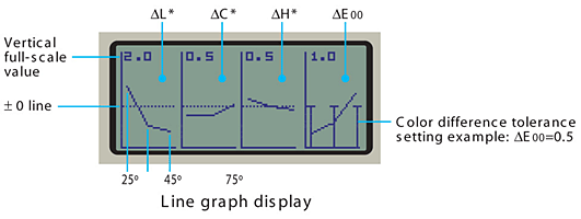 可一目了然地判別出所測顏色是否在規定范圍內。可簡單有效地實施質量檢查。