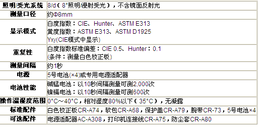 CR-14使用國(guó)際標(biāo)準(zhǔn)及眾所周知的CIE、ASTM和亨特爾白/黃度指標(biāo)進(jìn)行測(cè)量。